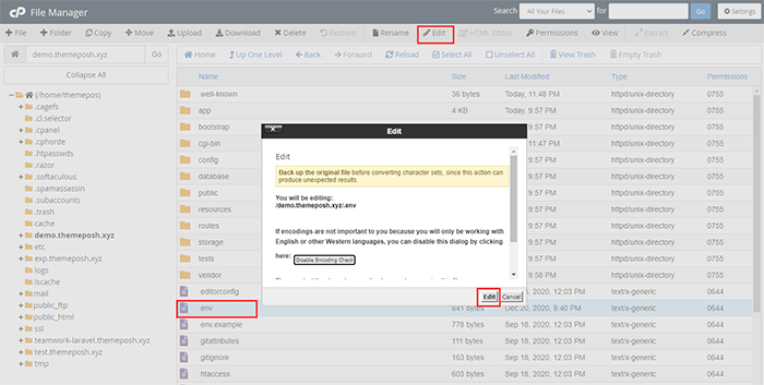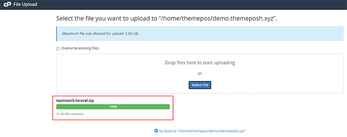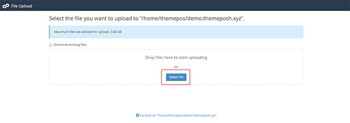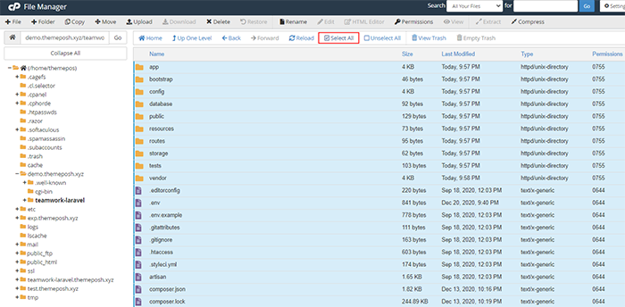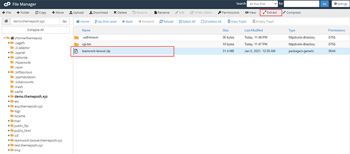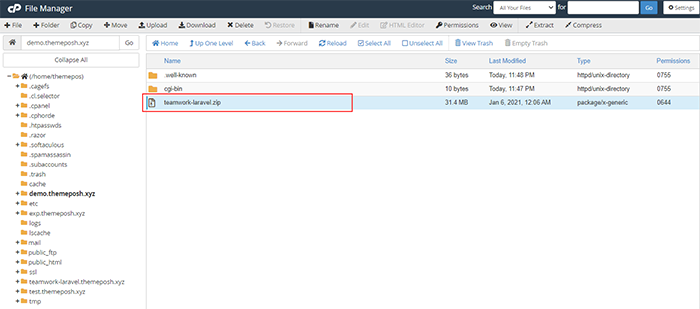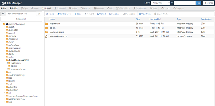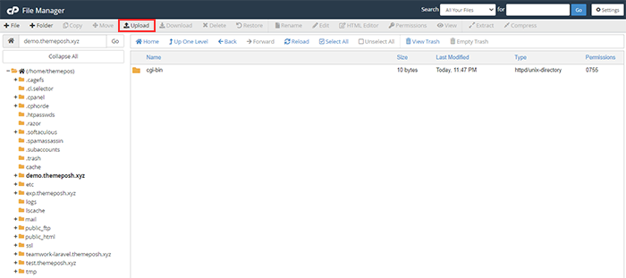 - Come to the File Manager and click on the demo.themeposh.xyz folder again. You will see the space below.